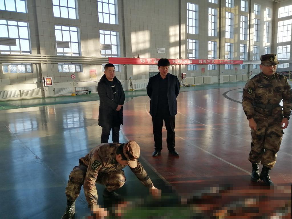 1月5日上午,党委副书记、校长张传辉,深入学校基干民兵冬季军事技能训练场,检查指导工作。
