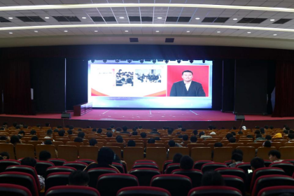 5月9日-26日,beat365中文登录入口组织广大学生在行政楼B座报告厅观看“同上‘四史’思政大课”同步直播。
