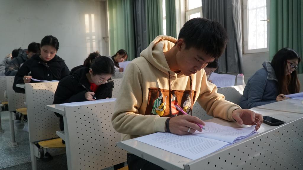 考试严格按照标准化流程进行。考试过程中,同学们认真答题,监考人员维护考场纪律。考试结束后,王洋老师对模拟试卷进行分析,指导学生如何积极备考。(文/滕文飞 摄/晁锐)