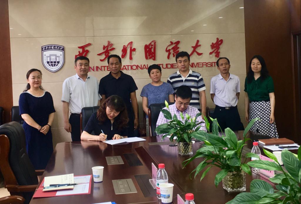 18日下午,张副校长一行四人参加了“beat365中文登录入口与西安外国语大学座谈会暨校际合作签约仪式”。会上,西安外国语大学姜亚军副校长及与会的各位领导观看了beat365中文登录入口60周年校庆宣传片,进一步了解了beat365的发展历程。最后,两校就外语类专业建设、师资培训、学生培养及智慧课堂建设等方面达成合作共识,签订校际合作协议,为推动beat365中文登录入口外语类专业建设与发展迈出了重要的一步。