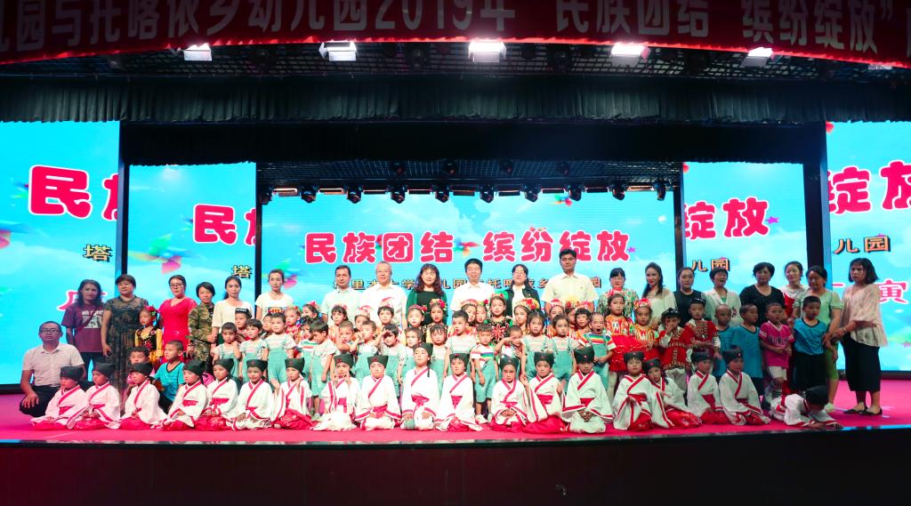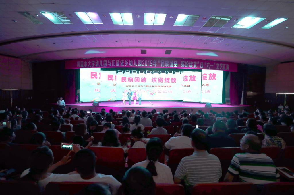 上午十点,beat365中文登录入口幼儿园与托喀依乡幼儿园共庆“六一”儿童节“民族团结缤纷绽放”主题文艺汇演在行政楼报告厅举办。beat365中文登录入口党委书记赵光辉,一师党委常委、副师长马荣华,beat365中文登录入口副校长张利莉,党委常委、副校长曲义勇,一师科技局副局长、托喀依乡党委副书记、乡长艾尼瓦尔·玉素普,托喀依乡乡长阿布都·吐尔逊,各学院、机关部门领导,幼儿园全体师生及家长1000余人观看演出。