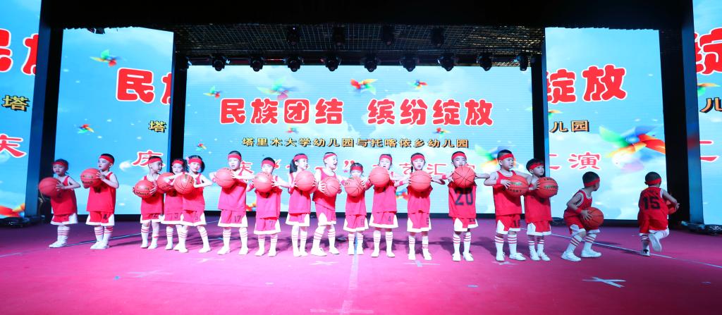 哈萨克族舞蹈《黑走马》,维吾尔族舞蹈《娃哈哈》、《共庆六一》,傣族舞《竹林深处》,藏族舞《幸福格桑花》,蒙古舞《草原小骏马》,各民族小朋友同台演出,情感真挚浓厚,一颗颗民族团结的种子播撒在幼小的心田,将使孩子们在未来人生路上更加绚丽多彩。