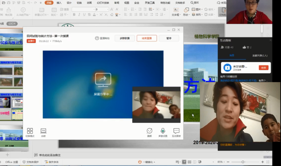 “昨天课堂上我请同学连麦回答问题,当镜头中出现一个小朋友时,我突然一个小紧张,此次钉钉直播课面对的不只是我的学生,还有学生的兄弟姐妹、父母长辈等,我的表现不仅仅代表我自己,还代表我们学校的形象,我必须竭尽全力讲好网课。”《田间试验与统计方法》课程任课教师王瑞清说。