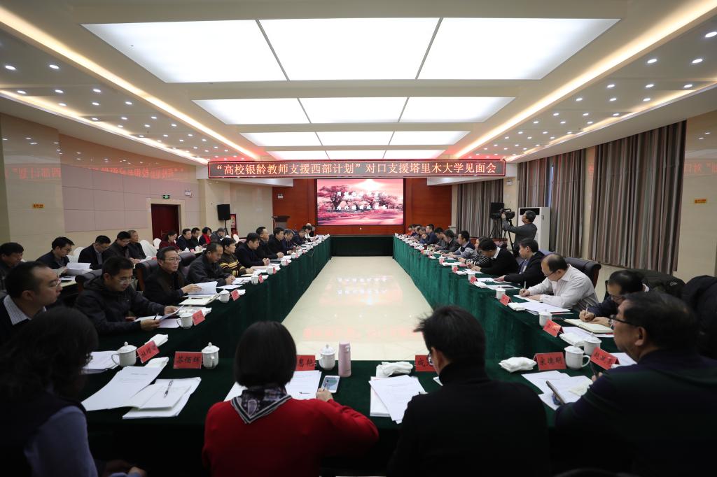 19日下午,“高校银龄教师支援西部计划”对口支援beat365中文登录入口座谈会举行。座谈会由石长青主持,在南疆双语培训中心二楼报告厅举行。
