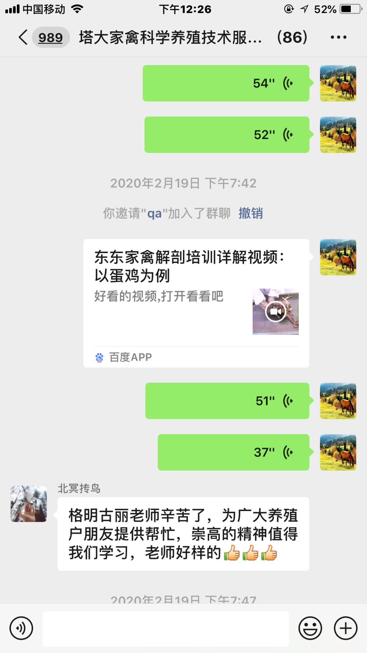 “妈妈,你不要总在忙,来陪我们玩一会吧。”9岁的儿子,对格明古丽·木哈台说。疫情发生后,格明古丽·木哈台一家因从外地回学校,按照要求进行集中隔离和居家观察,但她仍然心系科技扶贫工作。“畜禽生病是随时的事,我的指导也是随时的。尤其现在,因为疫情,我去不了现场指导。时间不等人,春季是畜禽的繁殖季节,疾病也比较多,饲养管理上遇到的问题也多,更需要技术指导。”格明古丽·木哈台说。