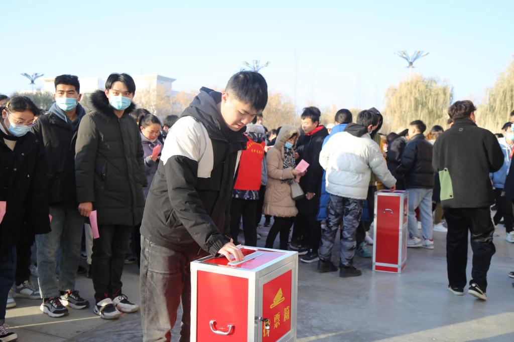为便于选民参加选举,学校共设4个选区于21日上午11时同时进行选举。党委书记赵光辉,党委副书记、校长张传辉,党委副书记、纪委书记单洪山,党委副书记张爱萍,党委常委、副校长曲义勇、于军以选民身份参加第一选区选举大会,带头投票选举。