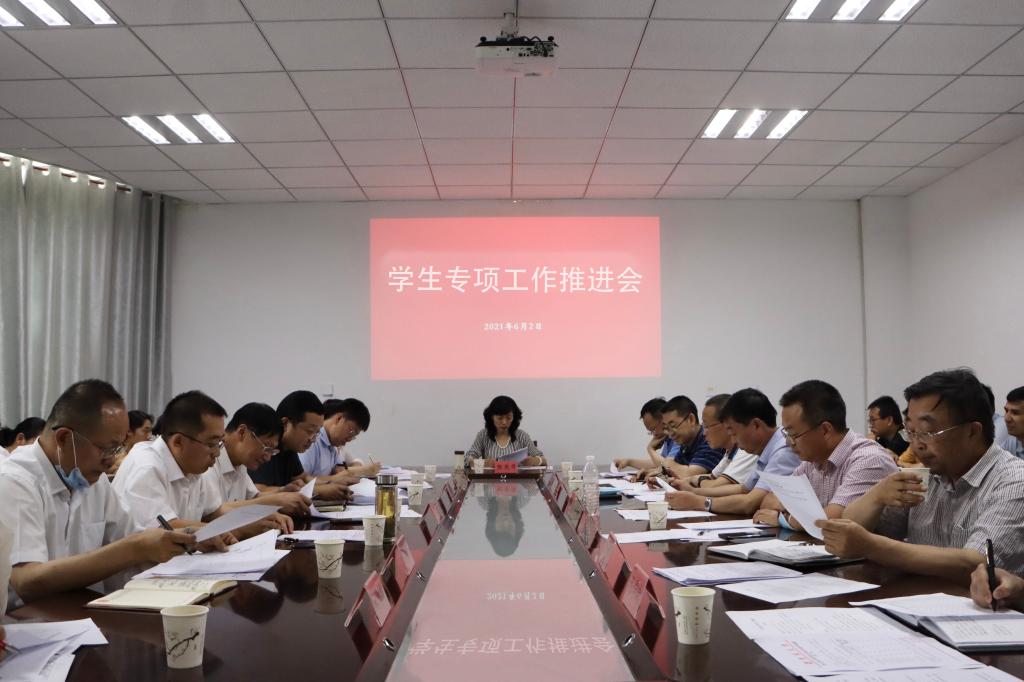 6月2日下午,学校召开学生工作专项推进会。党委副书记张爱萍出席会议并讲话。相关部门负责人、各学院领导、学生工作办公室和团委负责人参加会议。会议在工科实训楼2号会议室召开。