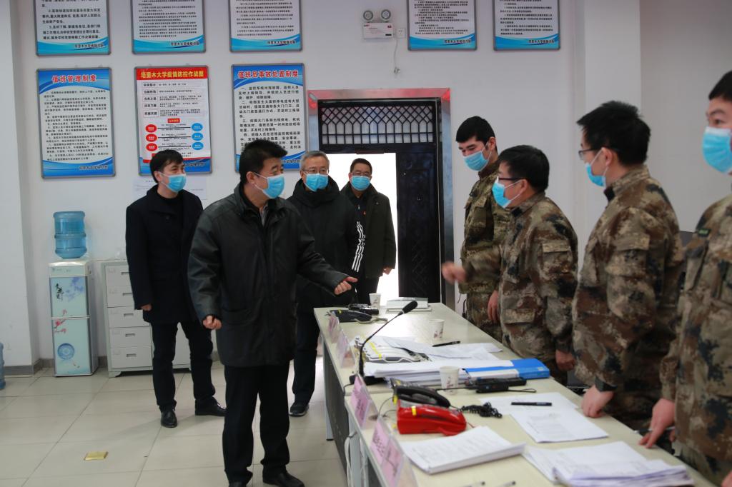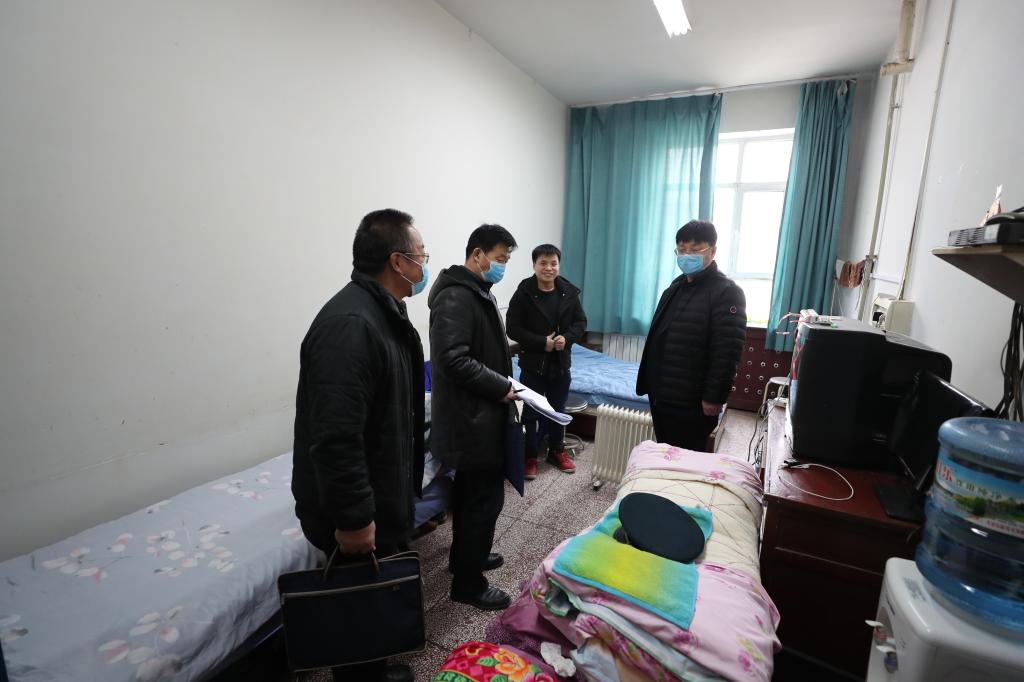 2月14日下午,党委书记赵光辉,党委副书记、校长张传辉,党委副书记、纪委书记单洪山,党委常委、副校长曲义勇、于军、石长青,分三组带领相关部门负责人,深入双语中心集中隔离区、解除隔离教职工家中、教工食堂、学生食堂、综合服务市场、物资储备库房、医院、大门等处,检查指导疫情防控工作。