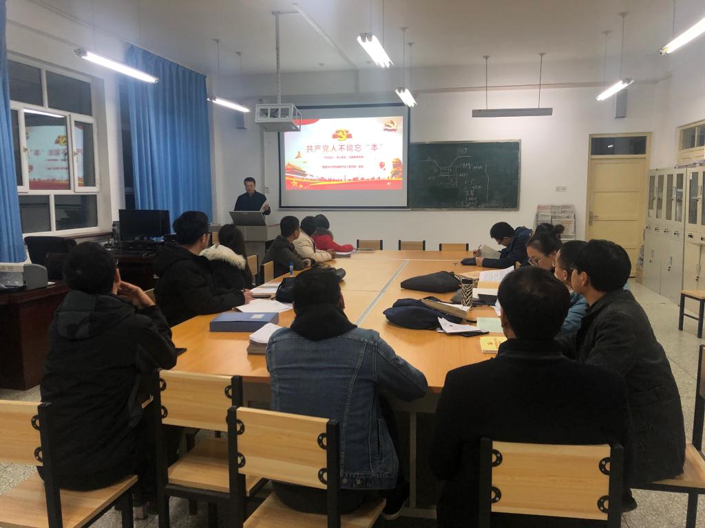 为进一步推进“不忘初心、牢记使命”主题教育,12月4日下午,学院副院长侯书林在工科楼207室,为教工第三党支部全体党员上“守初心、担使命——我和我的祖国”的专题党课。