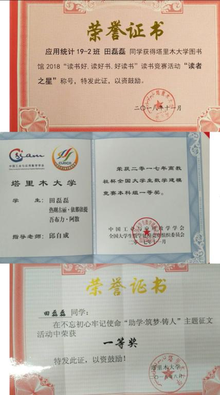 田磊磊同学负责校团委宣传工作两年,参加组织了各种国家级、校级竞赛并取得优异成绩。