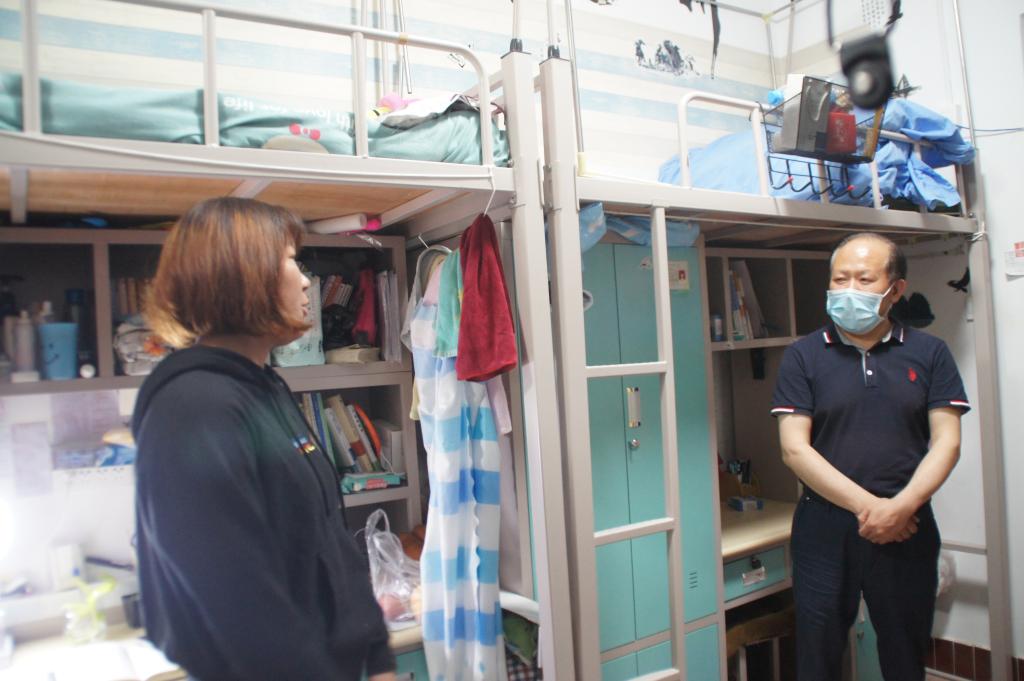 校领导与学生们亲切交谈,感谢同学们对学校各项安排部署的理解支持,肯定了同学们在返校复学和疫情防控工作中的积极表现、良好风貌,询问了同学们对学校的意见建议和对后续学习生活及暑期计划安排等情况。鼓励同学们要以健康向上的心态、积极昂扬的姿态投入校园学习生活,叮嘱同学们要自觉服从安排、守规守矩,认真做好个人防护,养成良好生活卫生习惯,保持宿舍环境卫生,上好学好各门课程。