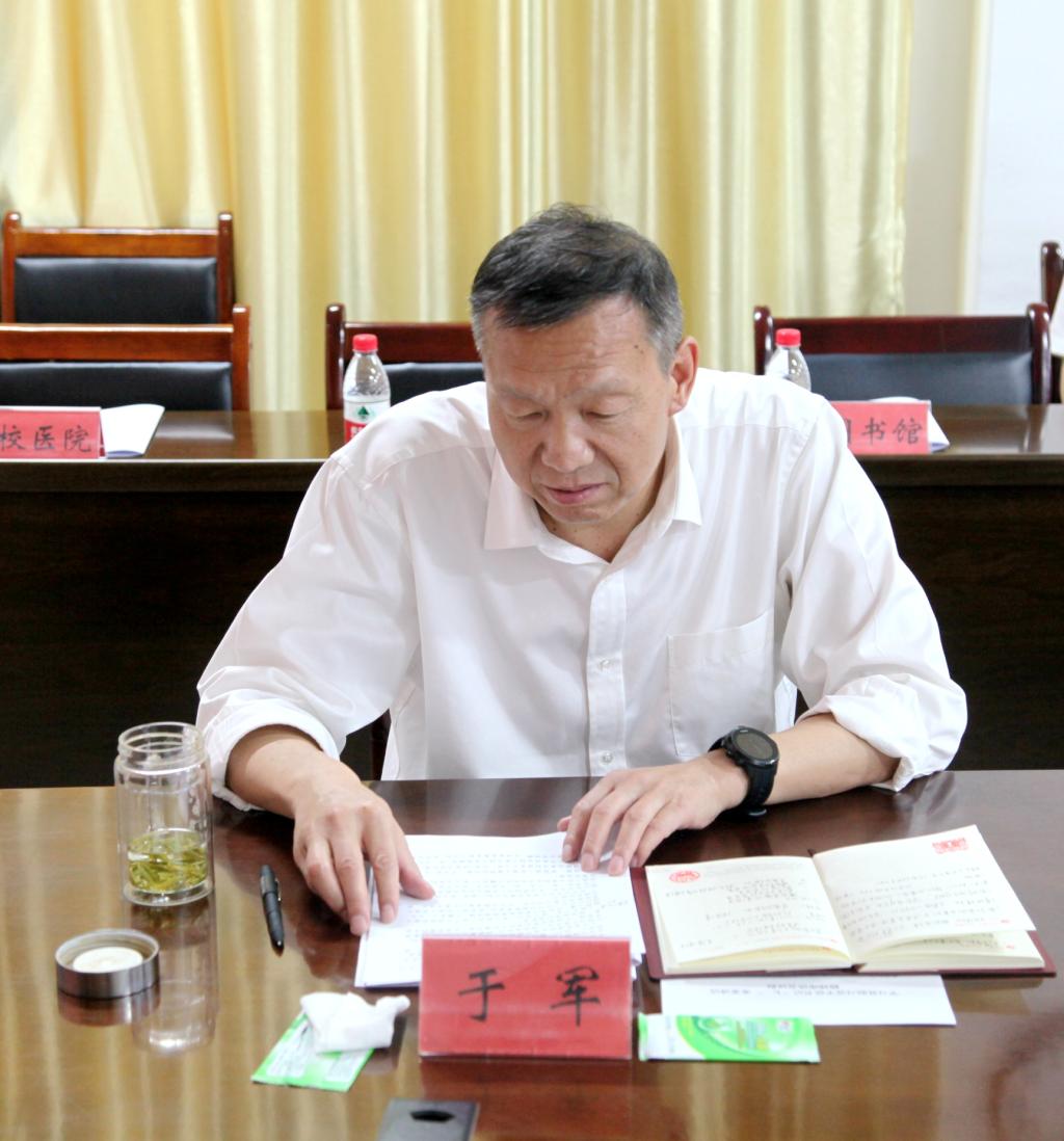 党委常委、副校长于军说,今天,我们比历史上任何时期都更接近、更有信心和能力实现中华民族伟大复兴的目标,同时必须准备付出更为艰巨、更为艰苦的努力。实现中华民族伟大复兴的中国梦需要我们的顽强拼搏、不懈奋斗。我们要牢记初心使命,坚定理想信念,践行党的初心和使命,从服务国家战略全局、新疆发展大局出发,不断提高政治判断力、政治领悟力、政治执行力,在深化教育教学改革、优化人才培养体系、加强学科专业建设、提升科研能力等方面持续发力,不断发展壮大办学综合实力,夯实学校看家本领,继续为实现人民对美好生活的向往不懈努力,努力为党和人民争取更大光荣。(文/杨宝仁 摄/何志强)