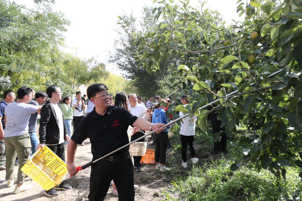 张传辉宣布里木大学庆祝中国农民丰收节暨首届采摘节正式开始,师生有序来到指定区域,开始采摘活动,共同品尝劳动的成果,体验丰收的喜悦。