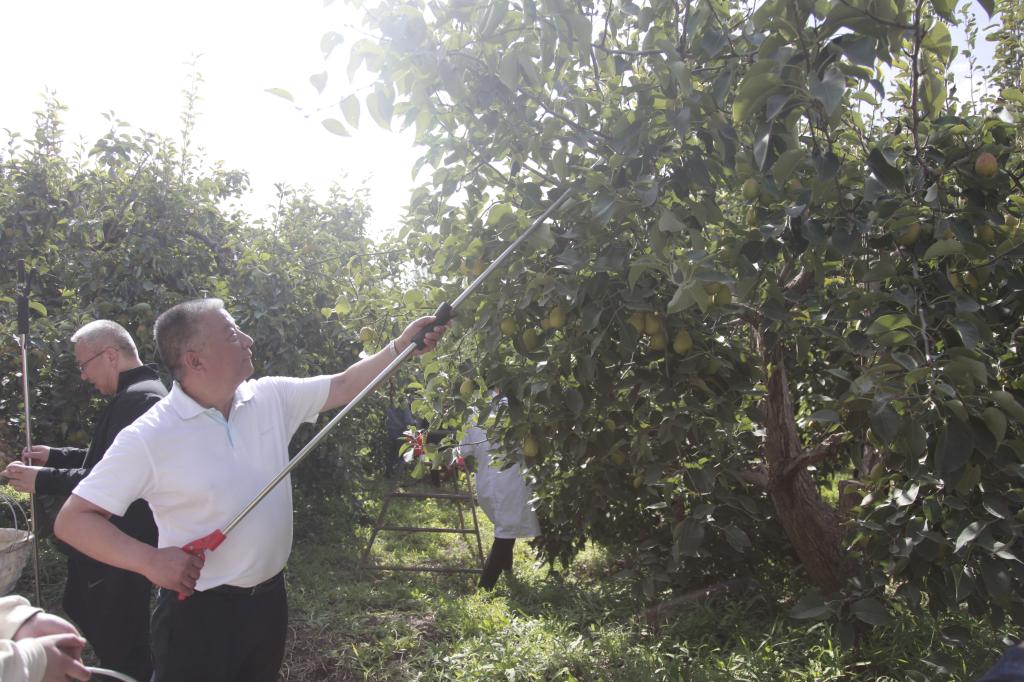 张传辉强调,推进香梨技术研究和推广应用,带动全国梨产业发展,这是我们学校义不容辞的责任。广大学生只有亲身地参与到采摘节当中,才能够更加投入到农业科技知识学习和农业生产实践当中。学校组织开展这次采摘节活动,就是让全校师生员工共同来品尝我们劳动的成果,分享我们丰收的喜悦,来品尝学校通过多年研究培育出来的最好香梨、新疆最美果品。通过师生们来品尝、来采摘,进而进行果品技术推广,能够助力于脱贫攻坚战略,助力于乡村振兴战略,助力于农业农村发展。