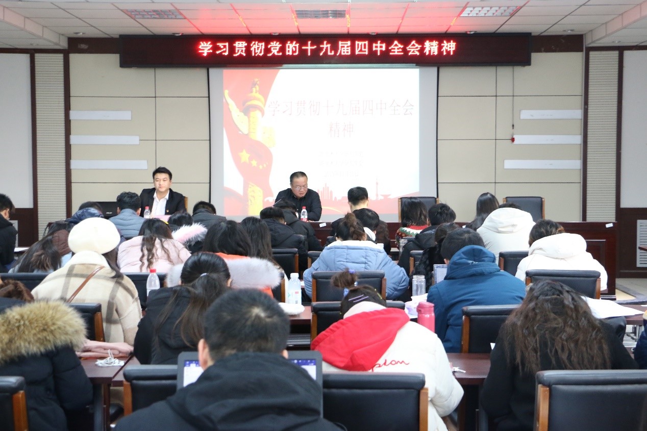 11月30日,beat365研究生在农工楼401学习党的十九届四中全会精神。党委研究生工作部部长高庆华领学了党的十九届四中全会精神。研究生会干部、研究生党员、博士、研究生各班班委等150人参加。会议由研究生辅导员栗文主持。