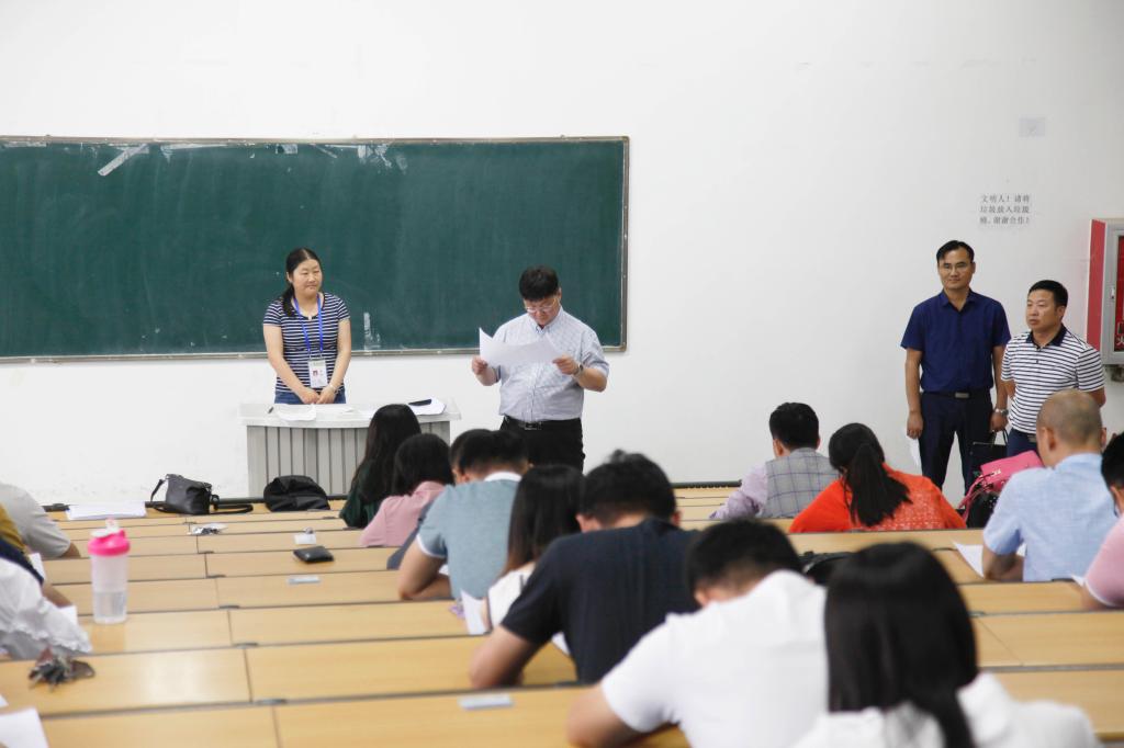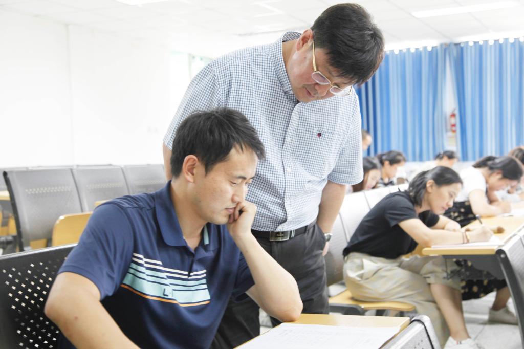 6月19日下午,张传辉校长一行亲临双语考试现场,对beat365双语考试工作进行了检查指导。他深入7个考试现场,逐一巡视考场考风考纪,对整个考试工作详细缜密的安排、学员们一丝不苟的答题和考务人员认真负责的敬业态度给予了肯定。