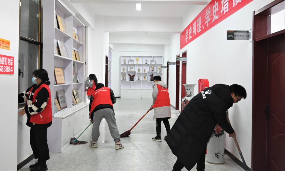 活动采用“小组分工”方式对楼宇内外进行整理与清扫。各小组分工明确、井然有序。从搬抬废弃桌椅到整理教室,从打扫实验室、会议室到清扫楼梯、楼道,经过一天的努力,新文科楼焕然一新。