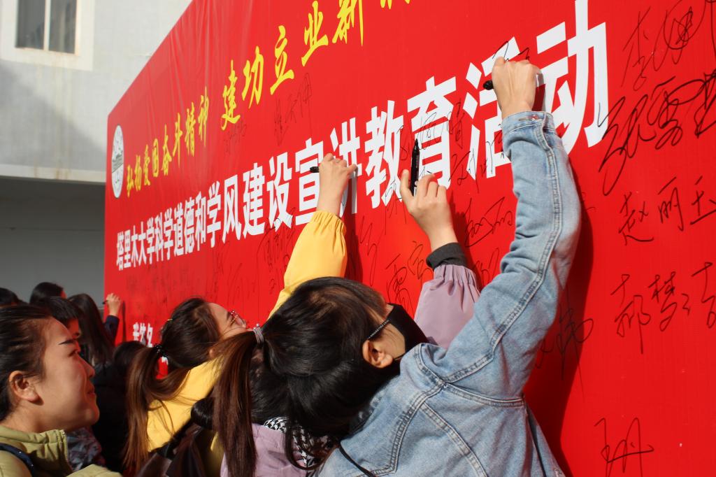 最后,大家在签名板上签名,将遵守学术规范、坚守学术诚信、完善学术人格、维护学术尊严铭记于心。