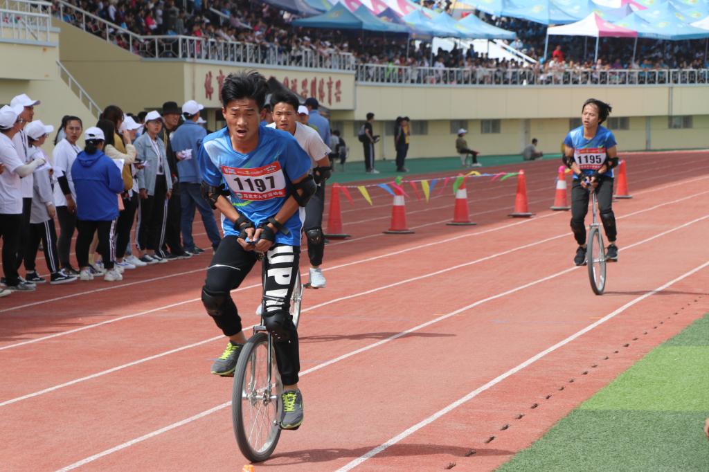 经过中午短暂的休息,下午阳光洒满大地,天气转热,观众席中的嘹亮的鼓声,观众的呼喊响彻云霄,独轮车5000米的比赛即将迎着烈日展开。赛道上各院的选手蓄势待发,信号枪声一响,来自水建院的郭宇同学一马当先冲到最前,但是中途不慎落后机电院的选。谢健同学没有放弃,他迅速调整好自己的状态,加速超过机电院第一个选手,不断加速最终夺得冠军。