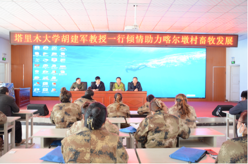 2月10日下午,应兵团纪委监委驻托喀依乡喀尔墩村驻村“访惠聚”工作队和村党支部邀请,动物科学与技术学院胡建军教授、张苏江教授组成的畜牧兽医科技特派员服务团队赴该村开展牛、羊健康养殖、疫病防控基础知识培训。
