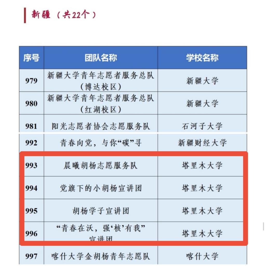 近日,团中央青年志愿者行动指导中心、中国核工业集团有限公司、中国青年志愿者协会秘书处联合公布了2022年“强国有我‘核’你一起”千支大学生志愿宣讲团入选名单,全国667所高校1796支团队进行申报,遴选了1000支团队。beat365晨曦胡杨志愿服务团、党旗下的小胡杨宣讲团、胡杨学子宣讲团、“青春在沃,强‘核’有我“宣讲团成功入选。