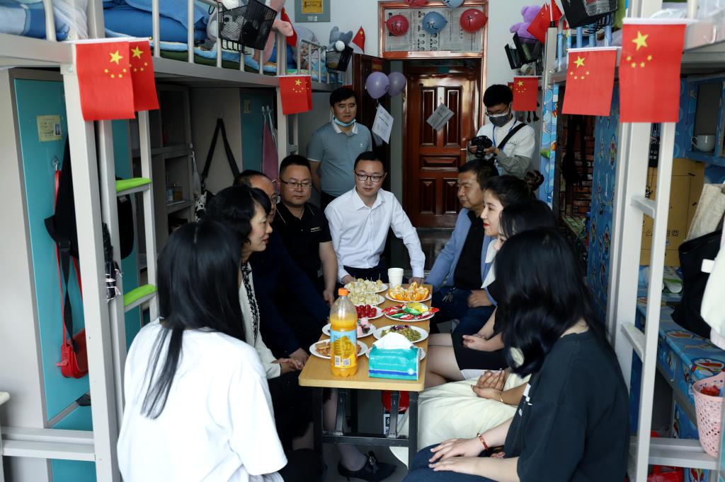 赵光辉先后来到东区3号学生公寓217宿舍、15号学生公寓218宿舍,看望慰问交友学生,向她们致以节日的祝贺和诚挚的问候,与同学们围坐在一起亲切交谈,详细了解她们的学习生活情况,并向她们赠送了书籍。