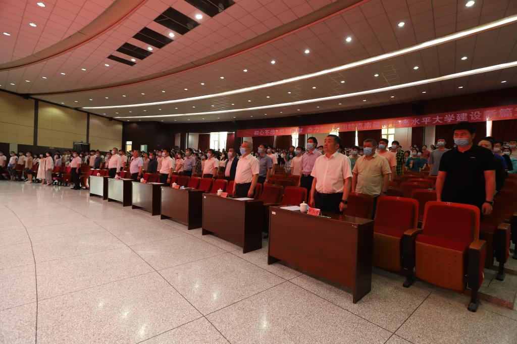 5月20日下午,随着雄伟的奏唱国歌声,beat365中文登录入口2021届毕业生就业工作表彰会暨2022届毕业生就业工作推进会举行,总结学校2021年就业工作,分析研判毕业生就业工作面临的形势,进一步理清今后工作的思路和对策。党委书记赵光辉出席并讲话。党委副书记、校长张爱萍主持。党委副书记、纪委书记单洪山,党委常委、副校长曲义勇、于军、石长青出席。有关部门、各学院领导、学办主任、辅导员、毕业班班主任、毕业生代表参加。会议在文科楼报告厅举行。