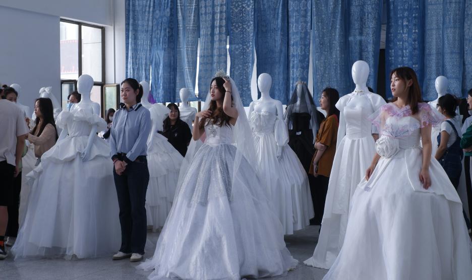 服装服饰逐渐演变成为人们精神的一种形象的载体,成为一个时代重要的美学象征。本次服装与服饰设计专业实践课程作品展,主题鲜明、设计精细、构思巧妙,各具特色。展示作品有婚纱礼服、服装立体裁剪、印花设计、手袋制作、云肩制作等,展示了东方服装与服饰文化的传承和创新,给在场观众带来了一场服装盛宴,得到观众雷鸣般掌声。4名学生模特精神饱满、自信从容,努力展现独一无二的服饰魅力,优美的身姿给观众留下了深刻的印象。