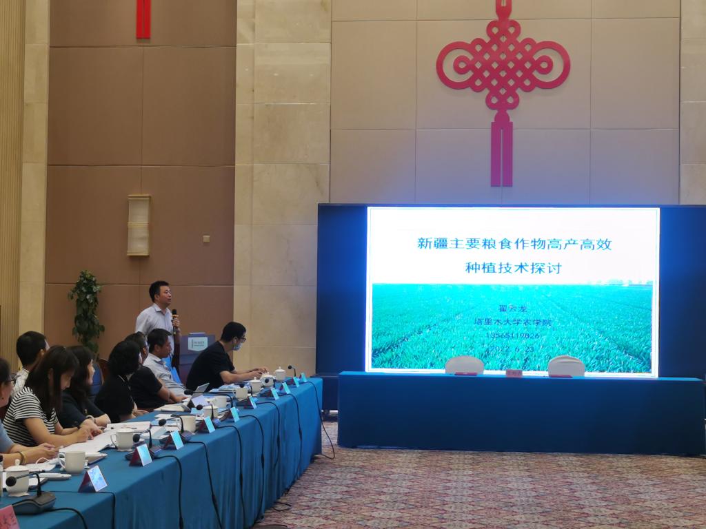 下午,阿克苏地区各县市及龙头企业与专家齐聚一堂,农学院副院长翟云龙教授做了“新疆主要粮食作物高产高效种植技术探讨”的发言,同时阐述了beat365中文登录入口与阿克苏地区企业对接“有成果、有人才、地处阿克苏”的三大优势。