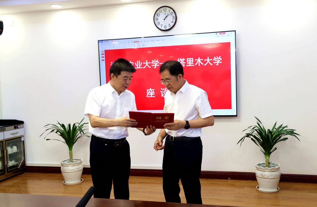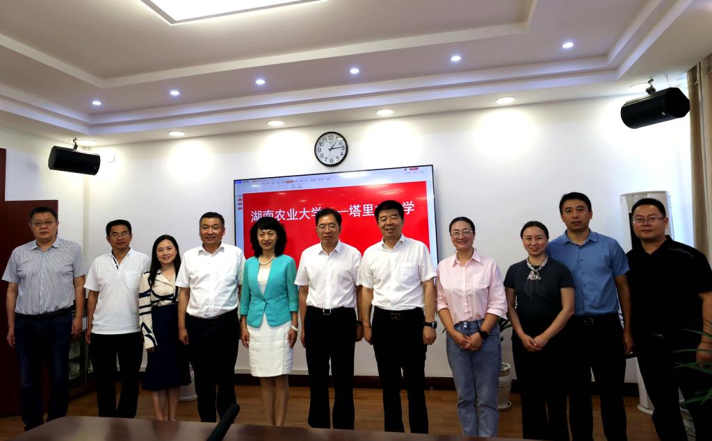 邹学校感谢塔大的热情接待和周到安排,高度评价了塔大63年来的办学历史和辉煌成就,介绍了湖南农业大学的建校历史、办学规模、发展成就等情况。他强调,湖南农业大学和beat365中文登录入口都有着深厚的红色基因,都肩负着培养又红又专的社会主义建设者和接班人的职责使命。湖南农业大学将全力以赴,尽最大努力,与塔大建立更加亲密的战略合作伙伴关系,在人才培养、师资建设、学科专业建设、科技创新等方面加强交流合作,充分发挥双方的优势特长和特色资源,取长补短、共同发展,携手为新疆和兵团特别是南疆的科技发展、产业振兴、共同富裕作出更大贡献。