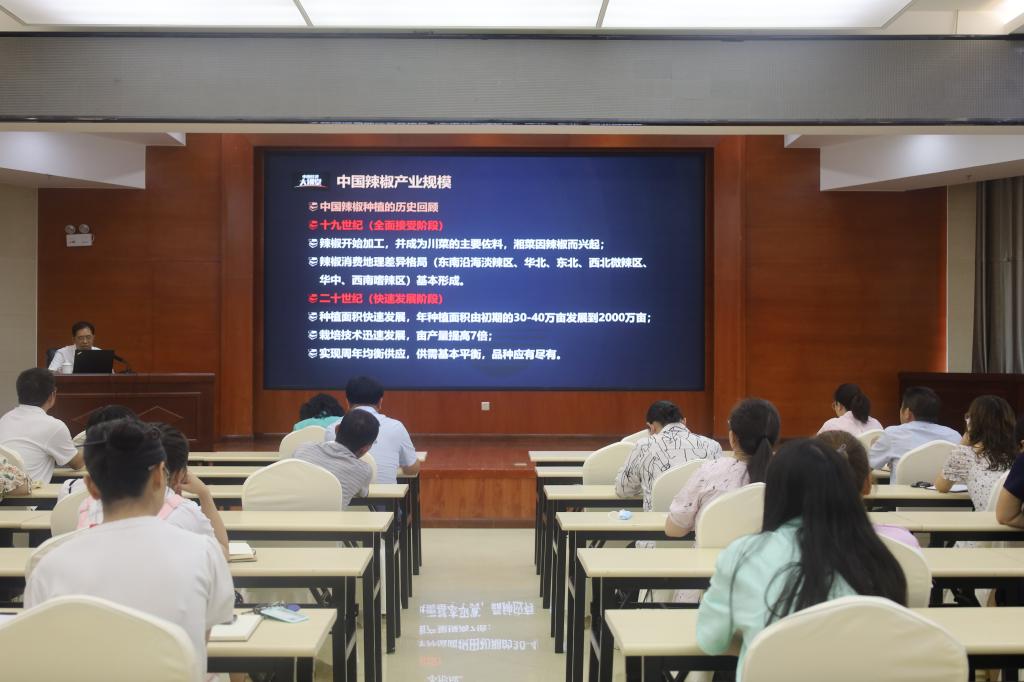 期间,邹学校院士为beat365相关专业教师作了题为《我国辣椒产业现状及发展趋势》的精彩学术报告。重点从相对风险、扶贫产业、国家政策等方面出发,围绕我国辣椒的起源与传播、种植历史回顾、中国辣椒产业规模分布及辣椒产业发展,深刻分析了辣椒作为最大蔬菜产业的形成原因,深入阐述了新疆作为全国干辣椒最高产区的优势。
