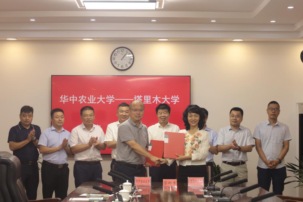 李召虎感谢学校的热情接待,对学校的办学成果和取得成就表示敬佩,介绍了华中农业大学的办学历史、办学理念、办学特色、办学成果等情况。他强调,两校兄弟情谊源远流长,对口支援、合作办学成果显著。希望双方以新起点、新征程为合作新契机,在学科、专业、师资、平台、科研建设等方面保持密切沟通合作,同时鼎力支持塔大博士点申报工作,共同把党的教育事业办好办强,为服务国家战略、新疆工作总目标,作出新贡献。