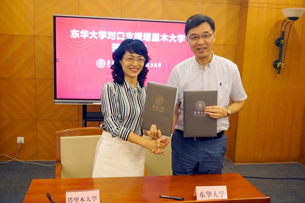 张爱萍与刘承功代表两校共同签订了《东华大学对口支援beat365中文登录入口协议书》。