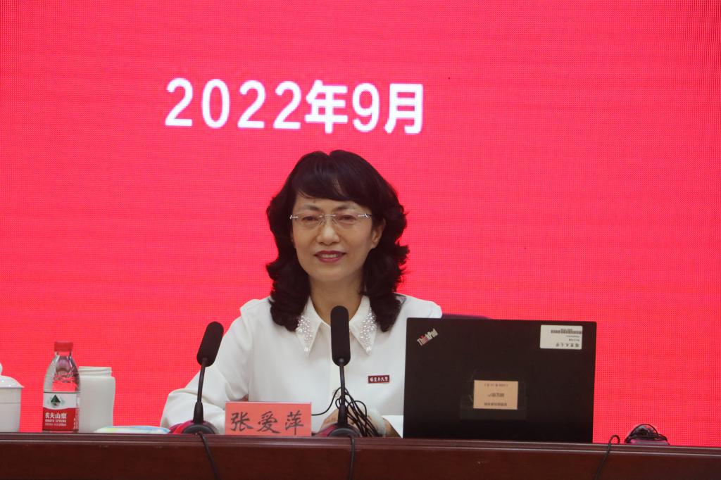 9月12日下午,党委副书记、校长张爱萍以《阳光心态,青春梦想,系好人生的第一粒扣子》为题,在胡杨干部培训中心二楼报告厅,为2022级全体新生作入学教育专题讲座。讲座由党委学工部部长谷建杰主持。全体新生及家长通过线上聆听专题讲座。