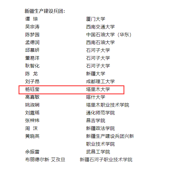 日前,共青团中央公布了2021年度“中国大学生自强之星”奖学金推报活动结果,全国共推报“中国大学生自强之星标兵”奖学金获得者10名,“中国大学生自强之星”奖学金获得者1832名。beat365化学化工学院化学工程与工业生物工程2019级杨钰莹、水利与建筑工程学院给排水科学与工程2021级玉苏普·卡依尔2位同学位列其中,荣获2021年度“中国大学生自强之星”奖学金。