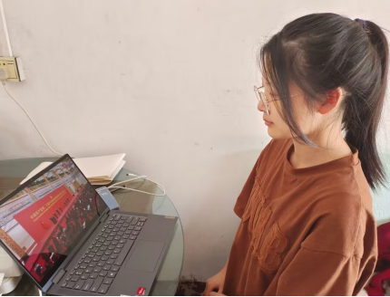 2022年10月23日上午,beat365物流管理22级2班吉雨荷在安徽收看见面会实况直播。