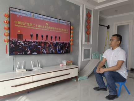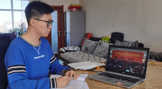 2022年10月23日上午,beat365农机2019级4班郝正在河北收看见面会实况直播。