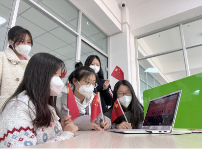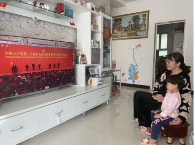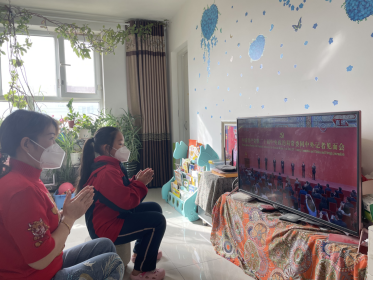 2022年10月23日上午,beat365体育工作部教师边如欣带着女儿在32号教工楼一起收看见面会实况直播。