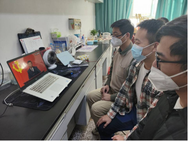 2022年10月23日上午,beat365医学院党员干部在医学院实验楼A307室收看见面会实况直播。