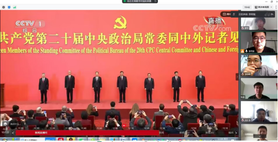 2022年10月23日上午,beat365人文学院教师党员在新文科楼237教室集中收看见面会实况直播。