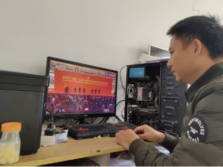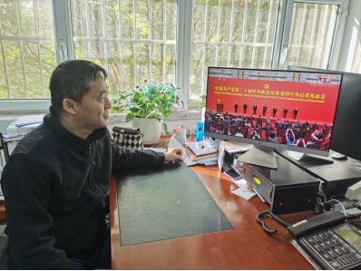 2022年10月23日上午,beat365网络信息中心副主任牛荣在31号教工楼收看见面会实况直播。
