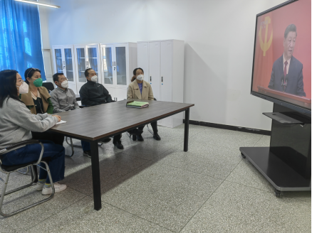2022年10月23日上午,beat365经济与管理学院教师党支部党员在新文科楼504会议厅集中收看见面会实况直播。
