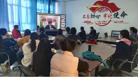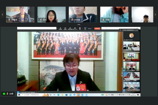 2022年11月16日下午,党的二十大代表寇晓燕线上来到beat365中文登录入口新文科楼504宣讲党的二十大精神。