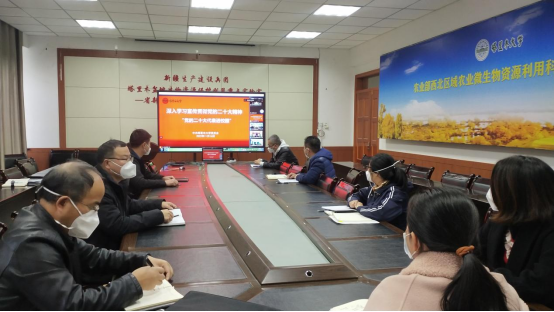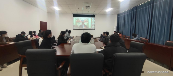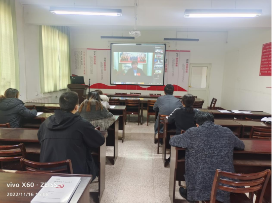 2022年11月16日下午,胡杨学院全体教职工在胡杨学院听取党代表宣讲党的二十大精神。