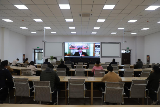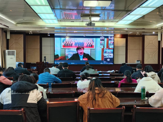 党委书记赵光辉,党委副书记、校长张爱萍,副校长张利莉,党委常委、副校长曲义勇、赵峰华、石长青、全校处级领导参加,全校师生线上线下参加宣讲报告会。报告会由石长青主持,在新文科楼504设主会场,各学院、党支部设立分会场。全校师生齐聚云端,掀起学习热潮。