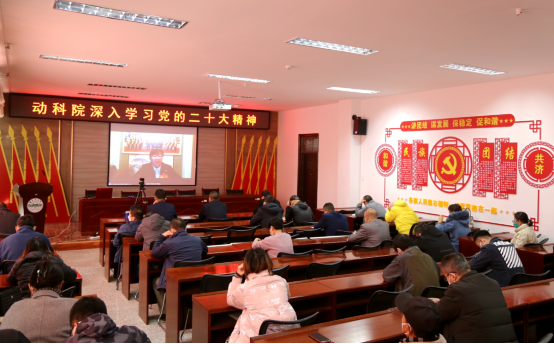 2022年11月16日下午,动物科学与技术学院全体在校教职工在动科楼318会议室听取党代表宣讲党的二十大精神,各学生支部线上听取。