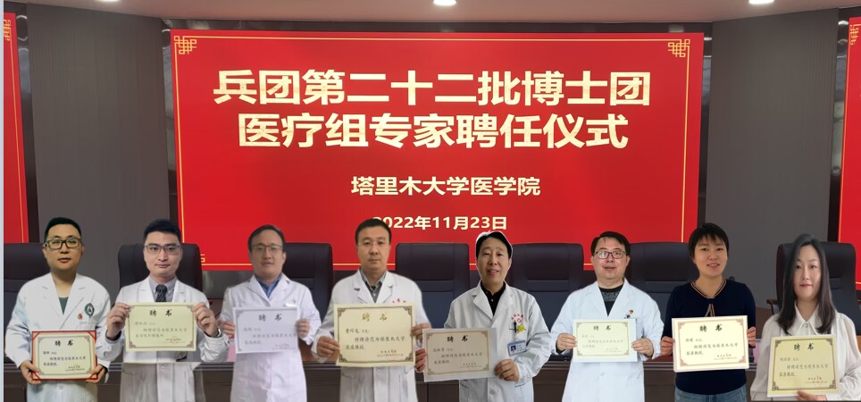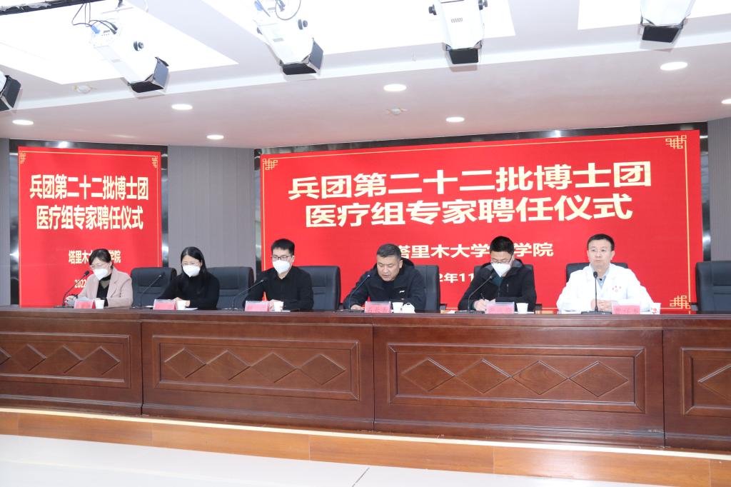 11月23日下午,兵团第二十二批博士团医疗组专家受聘仪式在beat365中文登录入口举行。党委常委、副校长石长青出席。相关部门,医学院相关领导及受聘博士团专家线上线下参加会议,会议由医学院副院长曹祥龙主持。在医学院多功能报告厅举行。