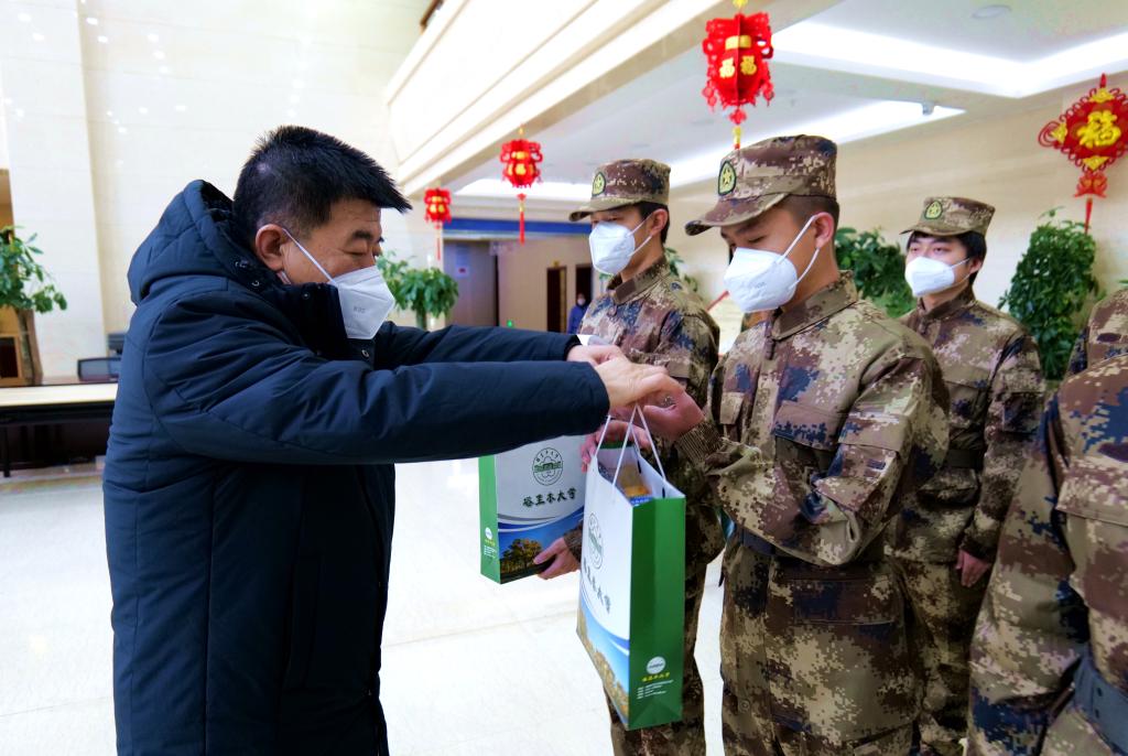 赵光辉、张爱萍为参军入伍大学生赠送了学校纪念品。