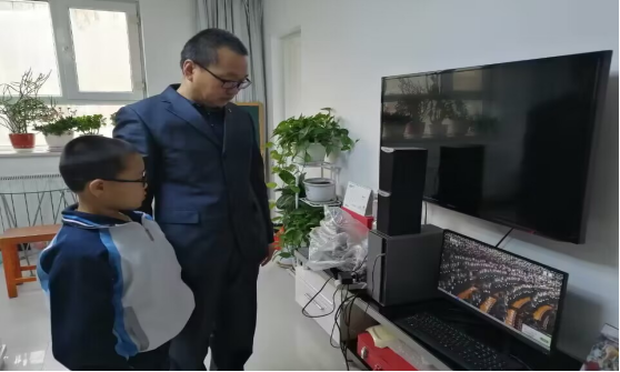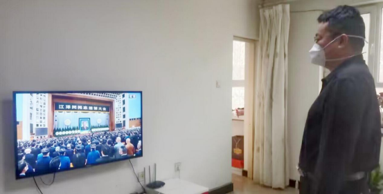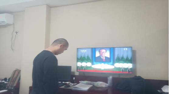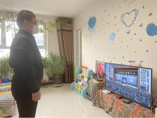 2022年12月6日上午,人文学院预科系主任卜祥坤在教工楼收看追悼大会现场直播。