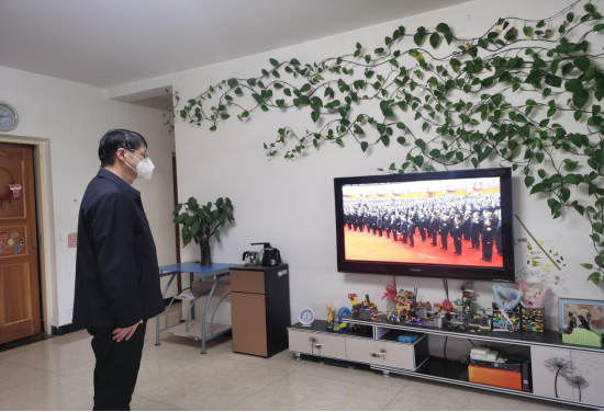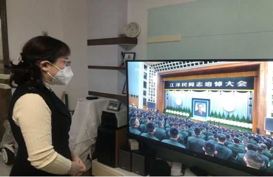 2022年12月6日上午,信息院数学系教工党支部江伟在金鲁学府小区34号楼收看追悼大会现场直播。